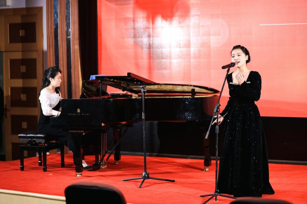 音乐会的惊喜是由刘洁老师担任钢琴艺术指导,寇利利老师深情演唱的《千古绝唱》《樱桃好吃树难栽》,其精彩表演赢得了全场师生们的热烈掌声。