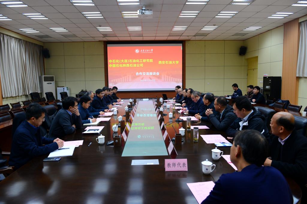 12月12日下午,中国石化(大连)石油化工研究院有限公司院长侯栓弟、党委副书记吴炳乾,中国石化陕西石油公司党委副书记李少青一行来校访问交流。交流座谈会在雁塔校区会议中心第一会议室召开。校党委书记常江、副校长张君涛出席会议。座谈会由校党委副书记张木主持。