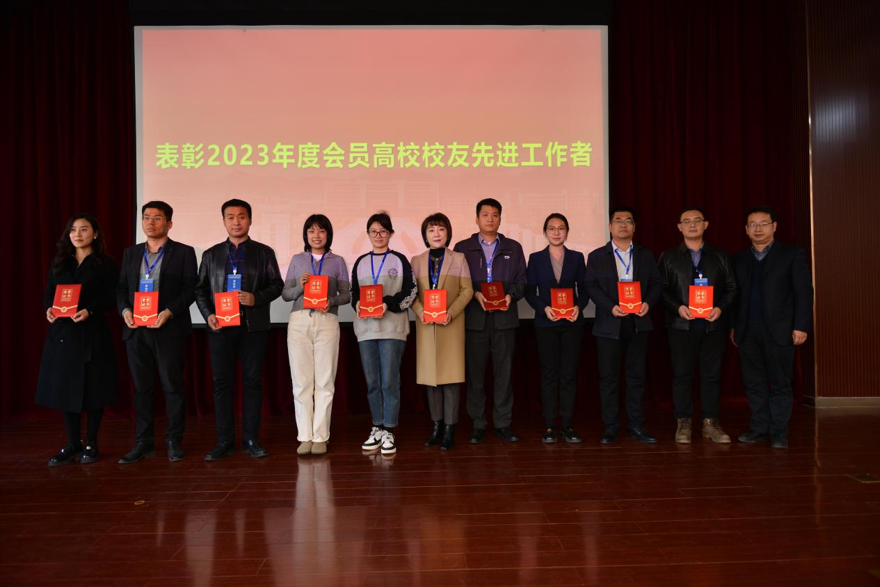 会议还表彰了2023年度会员高校校友先进工作者,并为西安交通大学白小萱和西安电子科技大学肖刚两位同志颁发了校友工作特殊贡献奖。第三届理事会会长杨铭作校友工作报告,秘书长隋河作了会议总结。