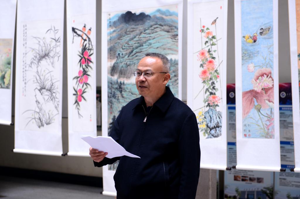李延平致开幕词,他首先向这次书画展的成功举办表示衷心祝贺,向参加今天开幕仪式的各位书画爱好者、各位来宾表示诚挚的欢迎,向参展嘉宾的辛勤创作表示感谢。他讲到,中华优秀传统文化是中华民族的文化根脉,也是我们书画爱好者创作的源泉。德州扑克