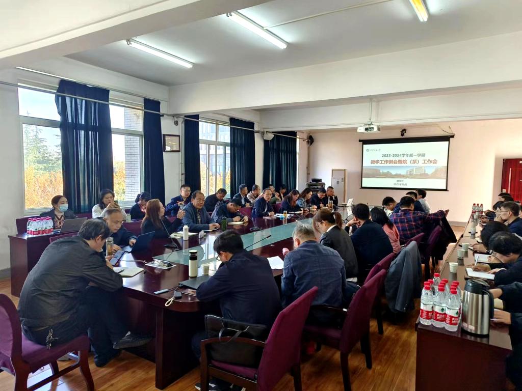 在鄠邑校区办公楼203会议室召开本科教学工作例会。教务处、学生工作处、团委、实验室管理处、高教研究与评估中心、创新创业中心及各院(系)相关负责人参加会议。会议由副校长张君涛主持。