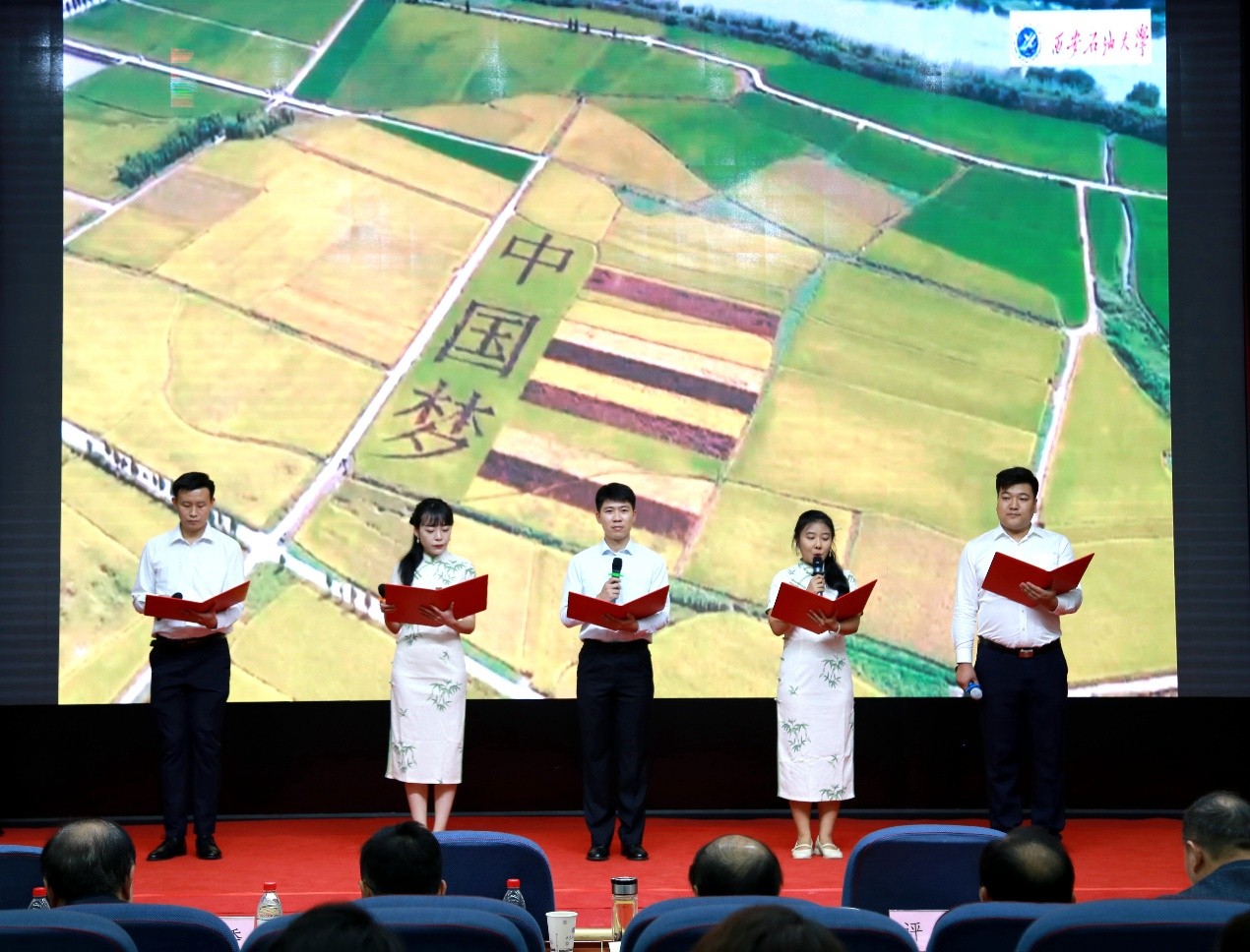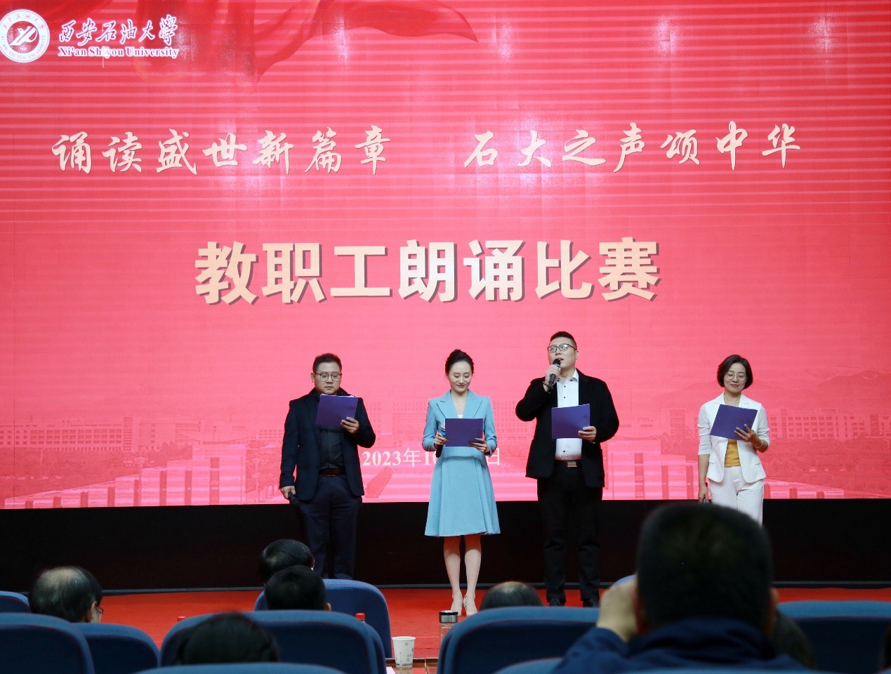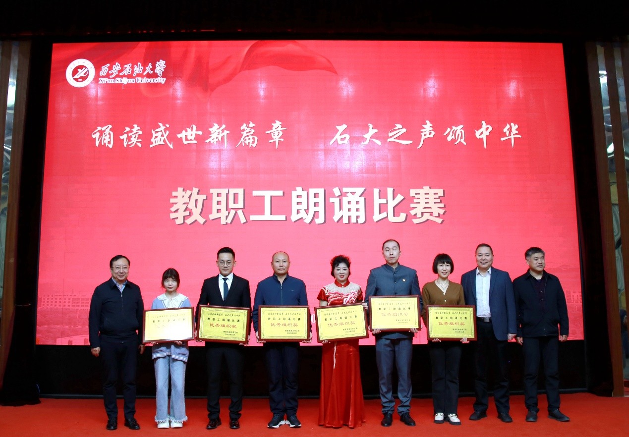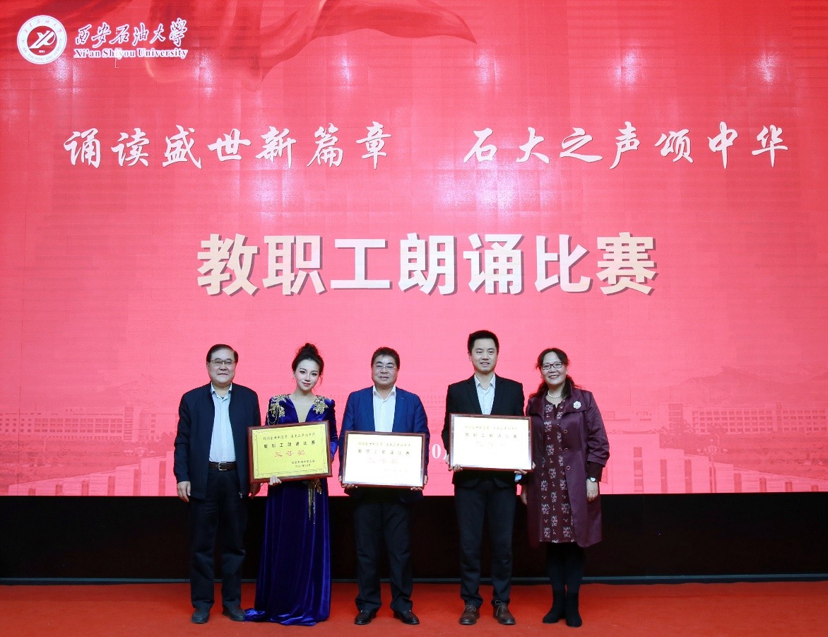 “诵读盛世新篇章 石大之声颂中华”教职工朗诵比赛在雁塔校区会议中心学术报告厅举行,校党委书记常江、副校长苏文甫出席了此次活动。22家部门工会选送了作品参赛,200余名师生观看了比赛。