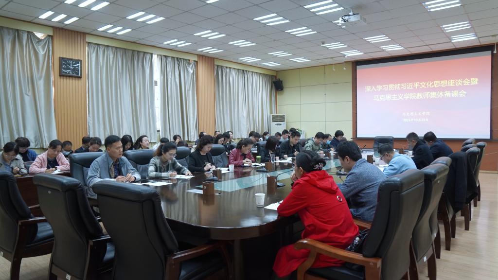在雁塔校区会议中心第一会议室召开学习贯彻习近平文化思想座谈会暨全体思政课教师集体备课会。校党委副书记张木出席,全体思政课教师共60余人参加会议。会议由马克思主义德州扑克