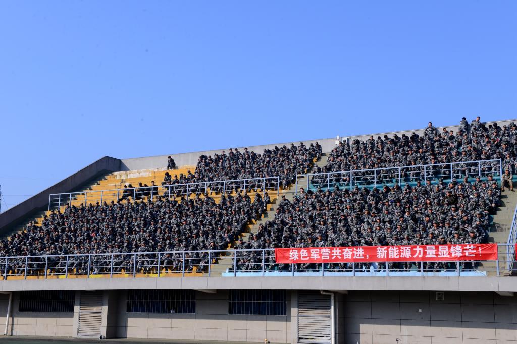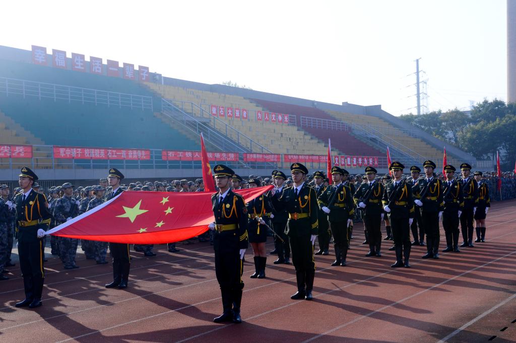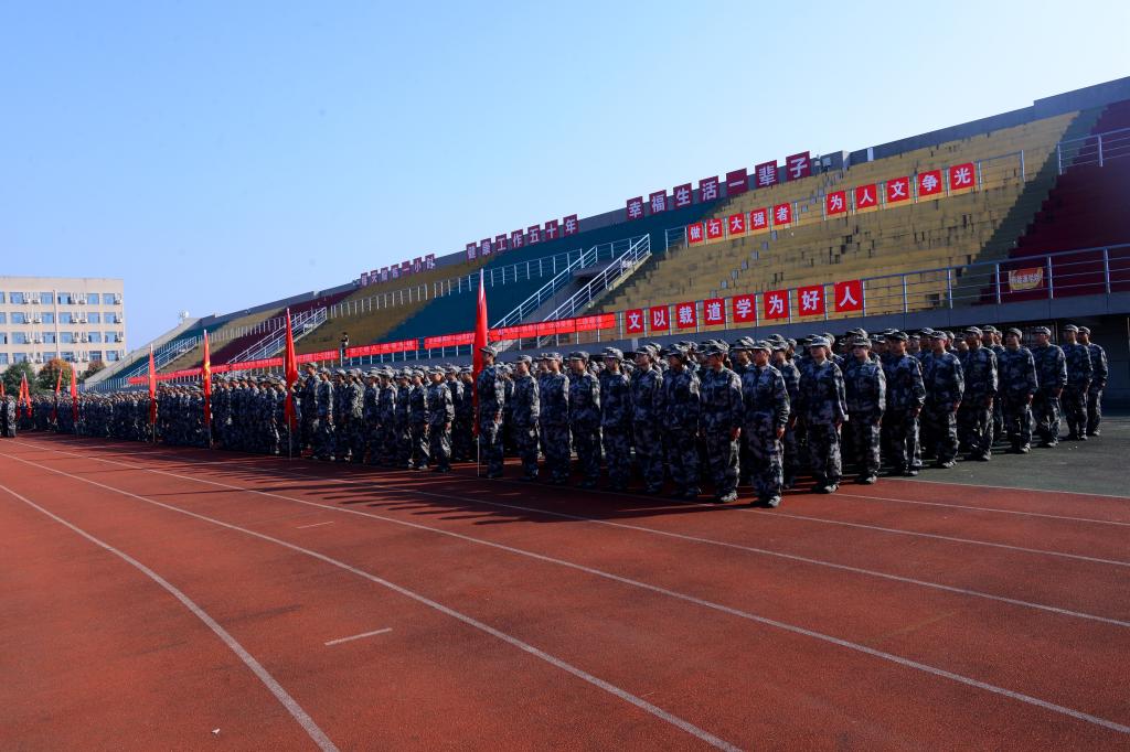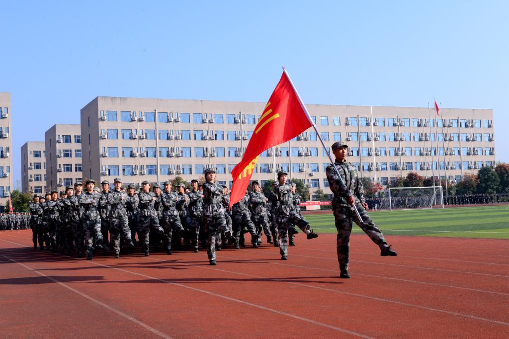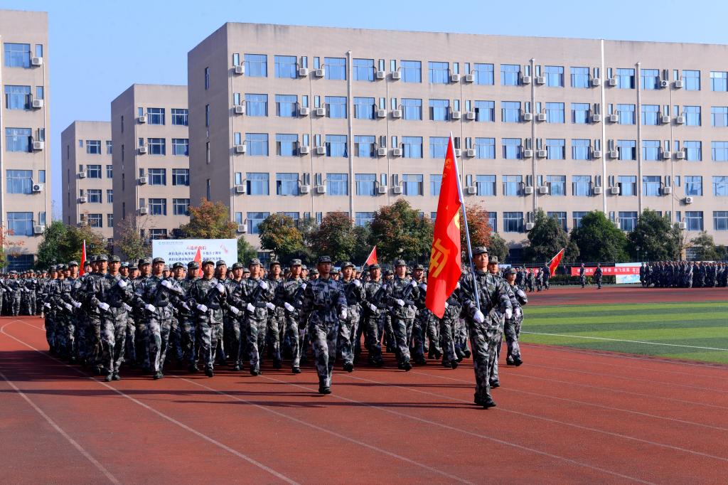 军训总结表彰大会在全场师生齐唱校歌的激扬旋律中圆满结束。