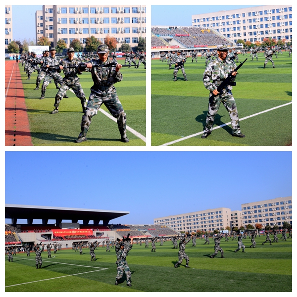 伴随着激昂的进行曲和嘹亮的口号,2023级本科生分13个方阵,迈着整齐矫健的步伐,精神饱满地经过主席台,向全校师生展示队列训练成果。队列成果展示后,还进行了格斗术、刺杀操等表演科目的展示。