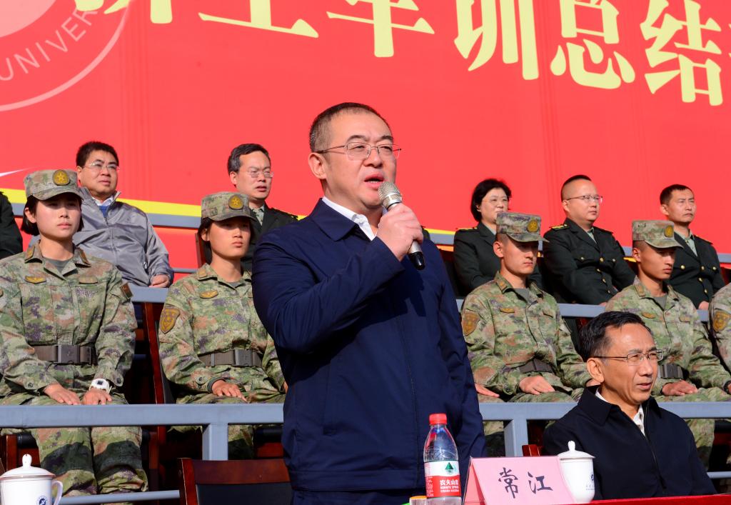 对承训部队全体教官表示感谢,对参训师生圆满完成军训任务表示祝贺,充分肯定了2023级本科生军训工作取得的成绩,并向广大参训学生提出三点希望:一是不忘初心,争做志存高远的大学生;二是锐意进取,争做勤学苦干的大学生;三是锤炼品格,争做引领风尚的大学生。
