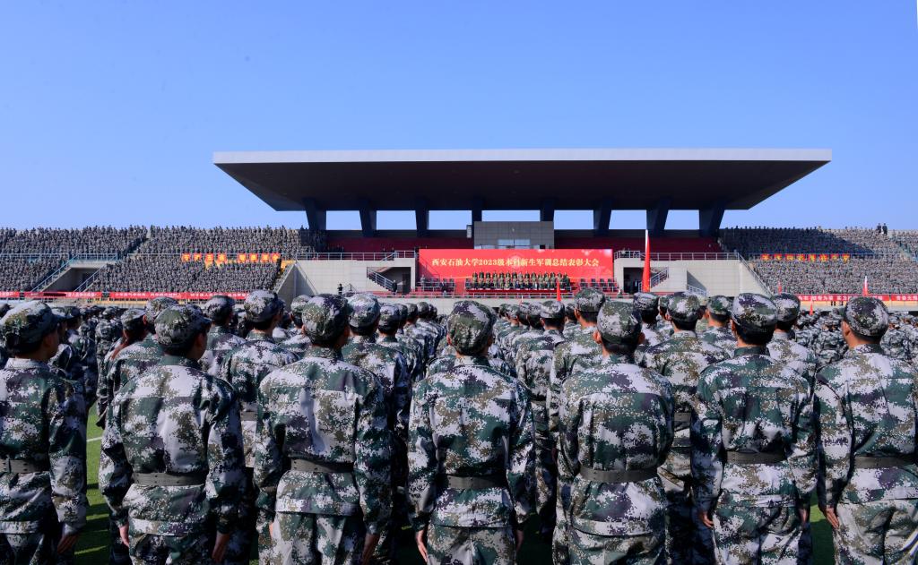 2023级本科生军训总结表彰大会在鄠邑校区东体育场举行。校党政领导常江、张木、张君涛,中国人民解放军某部张海伟中校出席大会。军训领导小组成员单位负责人,全体参训干部、教官及2023级本科生共4800余人参加大会。大会由副校长张君涛主持。