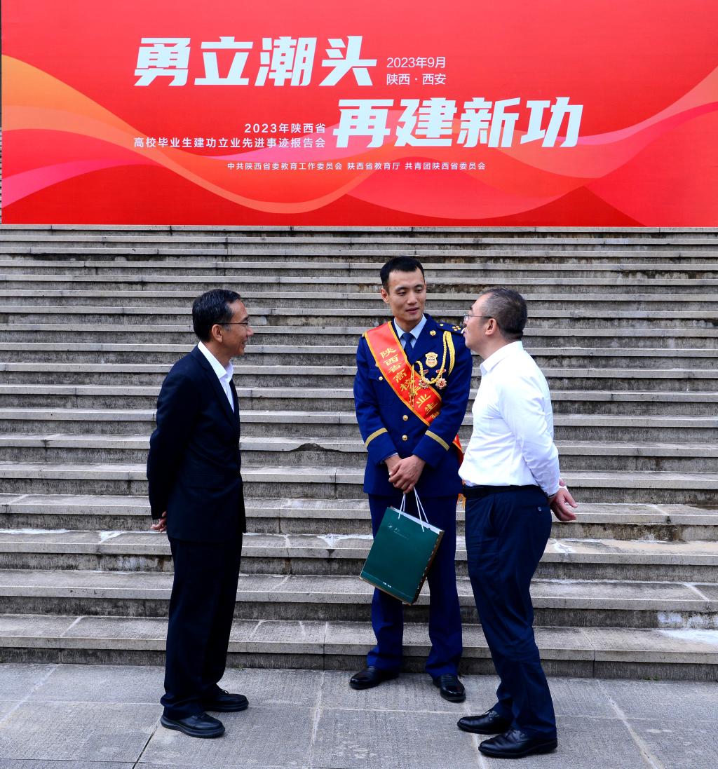 2011届本科毕业生、陕西消防总队一级助理员张瑞超先后作报告。他们从双脚踩进泥土里、绘就乡村新画卷,至精至微、极限追求,“青”舟何惧万重山,在血与火中淬炼青春四个主题,分别讲述了其在不同的领域上建功立业、发挥青年榜样力量的奋斗故事,用平凡的坚守创造了属于自己的精彩人生,用青春的行动践行了“请党放心、强国有我”的铮铮誓言。