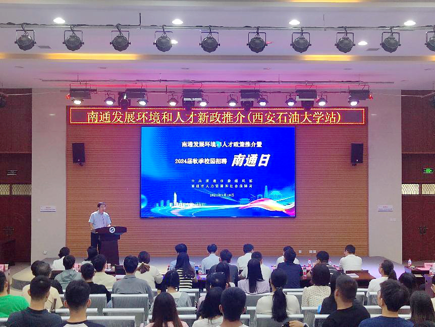 概况及2024届毕业生生源情况。他表示,南通市拥有独特的区位优势和广阔的就业市场,对高校毕业生人才具有强大的吸引力。西安市作为西部教育重镇,拥有巨大的人才体量,“你有位、我有才”就能珠联璧合。南通市坚持人才优先发展战略不动摇,进一步优化顶层设计,全力推进人才体制机制创新,着力破除制约人才发展的制度藩篱和政策壁垒,大力吸引人才来通就业创业,全市人才发展环境明显优化,区域人才竞争力显著提升,引才聚才效应不断凸显,人才成为推动南通产业升级和科技竞争力全面提升的“助推剂”。在此,他诚挚邀请南通市领导、对口企业来校开展各类人才供需对接活动,不断深化校地、校企合作,并祝愿南通市能“聚贤汇能”“人才通达”。