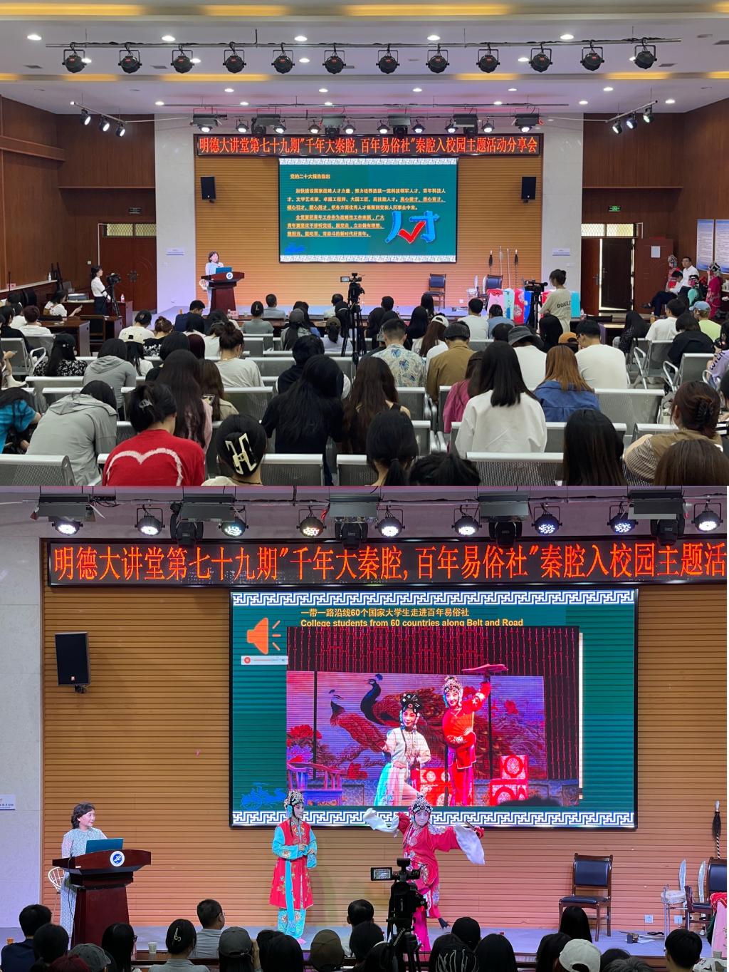 6月21日下午,“千年大秦腔,百年易俗社”秦腔入校园主题活动分享会于鄠邑校区崇文楼就业指导中心多功能报告厅举行。西安易俗社社长惠敏莉女士应邀来校作了题为《做文化自信、道路自信、理论自信、制度自信的文艺工作者》讲座,易俗社秦腔演员现场演唱《三滴血》等剧目,200余名师生现场观看。校党委副书记张木出席,人文德州扑克