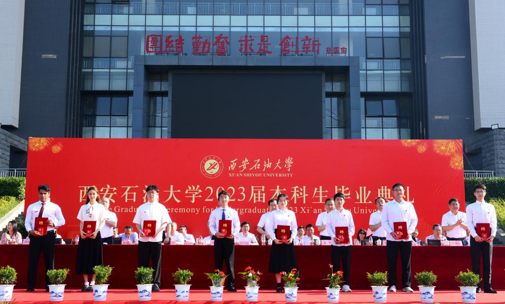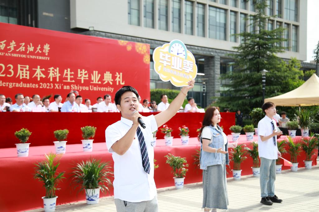 向顺利完成学业的4143名中外本科毕业生表示最诚挚的祝贺和最美好的祝福,向所有帮助大家的老师们、亲友们以及社会各界朋友们表示最衷心的感谢和最诚挚的敬意。李天太回顾了2023届毕业生四年的精彩时光,肯定了毕业生取得的出色成绩,并向大家提出了三点希望:一是希望同学们厚植家国情怀,坚定理想信念;二是希望同学们锤炼品德修为,做到行稳致远;三是希望同学们永葆进取之心,练就过硬本领。最后李天太寄语广大毕业生,用西石大精神照亮人生前行的方向,树立远大志向,保持奋进姿态,锤炼坚韧意志,勇做开路先锋和事业闯将,以不负过往、不畏将来之决心,用奋斗开创精彩人生,成就事业华章。