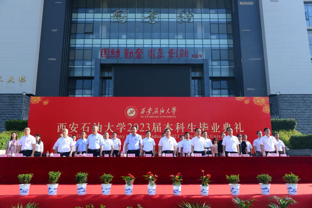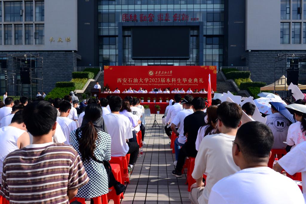 2023届本科生毕业典礼在鄠邑校区图书馆南广场举行。校党政领导赛云秀、李天太、李延平、张木、陈军斌、程永清、樊晓民出席典礼。相关职能部门、各院(系)负责人,教师代表、校友代表,2023届毕业生及家长3000余人参加典礼。典礼由校党委副书记张木主持。