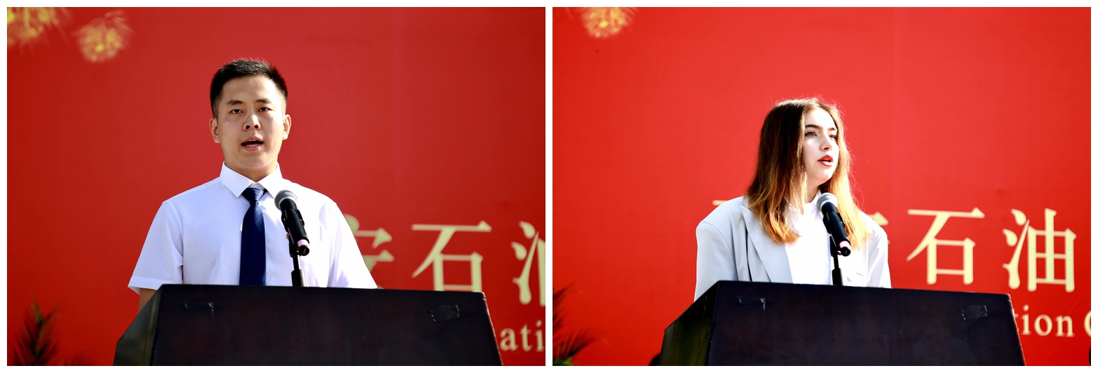 电子商务1901班芮娜同学分别代表毕业生和留学生发言。