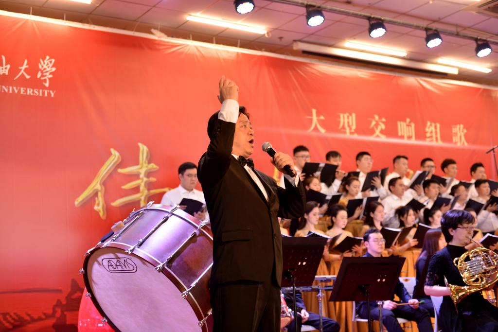 本次交响组歌以中国共产党的光辉历程为主线,择取重大历史事件和时段,在具有典型性的历史节点上落笔,礼赞式地回顾中国共产党自1921年成立至今走过的光辉历程,歌颂百年中前赴后继、艰苦卓绝的英勇斗争,歌颂新时代催人奋进、勇往直前的壮阔征程。整个作品由《序歌》《肇始石库门》《星火井冈山》《曙光遵义城》《风雪夹金山》《花香满延安》《日月换新天》《白纸绘画卷》《扬帆逐浪潮》《立根黄土地》《奋斗新时代》及尾声《七月的阳光》12个作品构成了一部史诗般的连贯整体,向师生们展示了中国共产党的光辉历程。