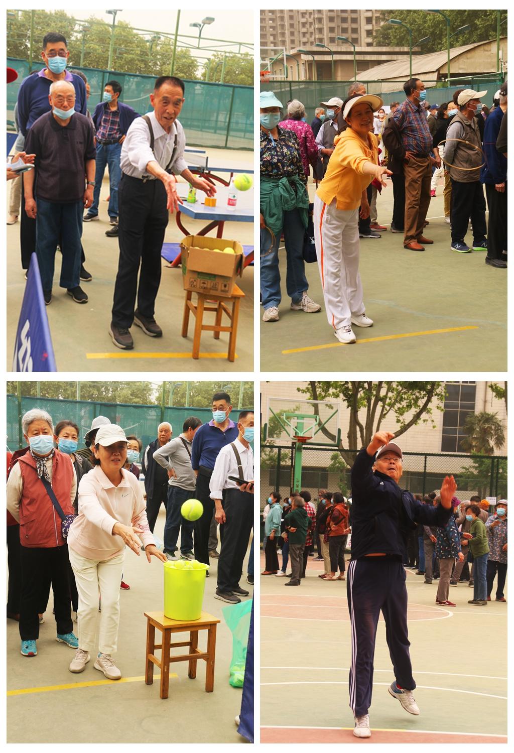本次离退休教职工趣味运动会根据老同志们的身体状况和兴趣爱好,根据天气状况,设立了8个融趣味性、竞技性为一体的比赛项目。在比赛中,老同志重拾青春,不服老,不服输,玩出了“精气神”和“年轻心态”,尽情地享受着比赛带来的乐趣。经过2个多小时的比赛,最终段翠英、高雅英、许秀秧获门球夺标前三名;何跃民、李聚源、刘文甫和李平、张晓丽、胡爱华分获男子、女子网球投准前三名;韩治龙、崔琪琳、曾昭宁和李真、刘雁蜀、薛芳霞分获保龄球前三名;张春黎、朱银全、冯延春和陈鸿雁、张彬、王爱莲分获套圈游戏前三名;闫友林、王贵怀、李聚源和许红英、张晓丽、杨桂花分获飞镖投准前三名;陈建铎和王玲分获定点投篮冠军。刘兆琦、乔国泉、贺富考和刘襄、许玉萼、张玉兰分获筷子夹乒乓球比赛前三名;刘兆琦、汤兴顺、王文安和杨君子、刘襄、范玉蓉分获掷乒乓球前三名。