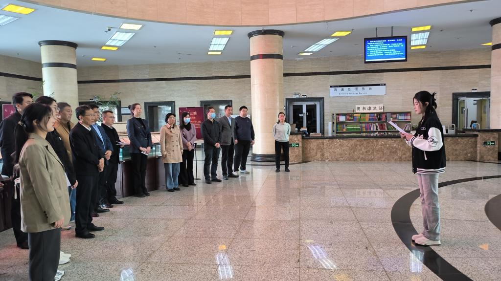 在鄠邑校区图书馆大厅举办2023年阅读推广活动启动暨《复兴文库》入藏仪式。校党委副书记张木出席并致辞。图书馆、鄠邑校区管理办公室负责人,各院(系)学生工作负责人及师生代表参加仪式。