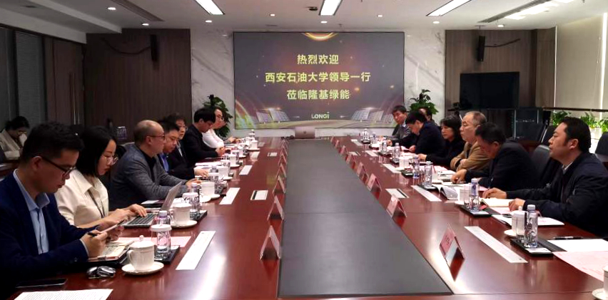 班子成员及相关教研室负责人等一行8人赴隆基绿能科技股份有限公司走访调研。隆基绿能科技股份有限公司招聘管理部总监戴坚、校园招聘高级经理郭彦、品牌管理部高级经理李濛、品牌管理部校企合作高级经理郑婷、校企合作经理王飞、硅片事业部校园招聘经理王帅、电池事业部校园招聘经理王粒等8位企业方代表出席。双方就新能源行业发展现状、企业发展与规划、校企合作项目、大学生就业实习等多个方面开展了座谈交流。