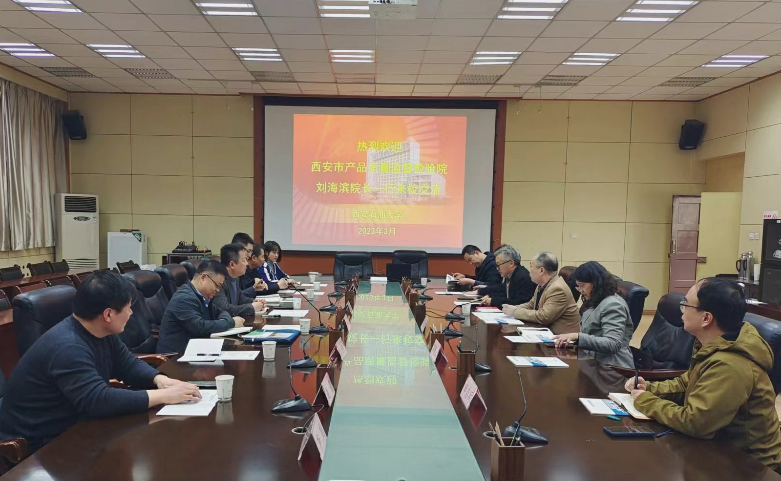 3月27日下午,西安市质量监督检验院院长刘海滨一行来校交流座谈。座谈会在雁塔校区会议中心第一会议室召开,德州扑克