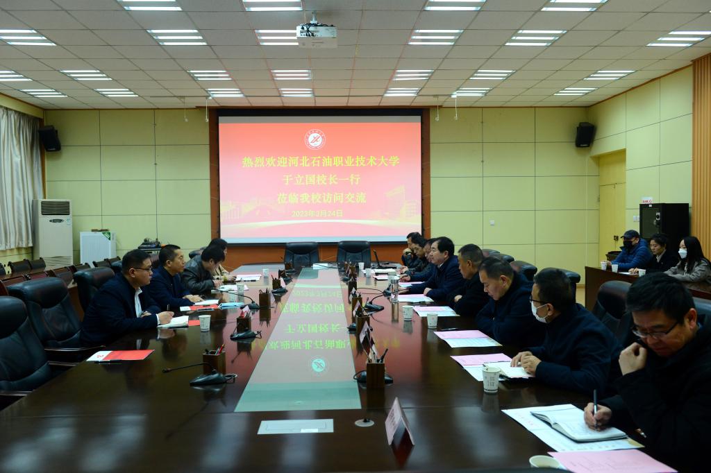 的热情接待表示感谢,并介绍了河北石油职业技术大学的历史沿革和办学基本情况。他表示,今年正值河北石油职业技术大学建校120周年之际,希望以此次交流为契机,不断巩固和深化两校之间的友谊,相互借鉴、取长补短,实现以交流促发展的美好愿景,共同推进两校各项事业高质量发展。