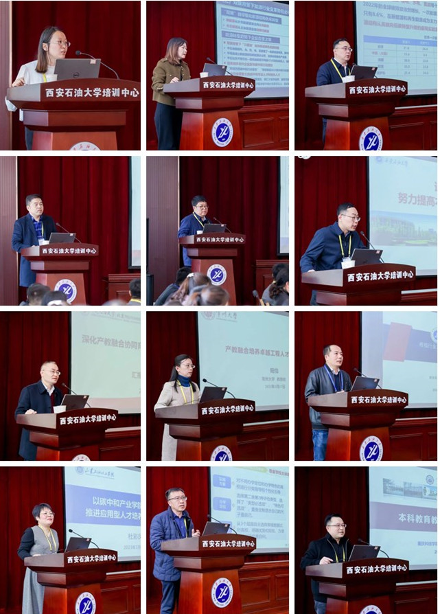 与会代表分别作了《“双碳”背景下全面提升人才培养质量的探索与实践》《“双碳”背景下碳中和人才培养的路径探索》《服务国家“双碳”战略,“双能驱动”培养一流本科人才》《“双碳”背景下应用型本科人才培养的思考》《绿色低碳背景下长江大学石油学科人才培养实践探索与启示》《深化产教融合协同育人,扎实推进新工科建设》《迎评促建,努力提高本科人才培养质量》《新一轮审核评估试点情况》《产教融合培养卓越工程人才的探索与实践》《以评促建、以评促强,建设行业特色鲜明的一流应用型大学》《产教融合驱动“双碳”背景下应用型人才培养路径探索与实践》《根植行业沃土 耕耘专业课——谈渗流力学课程思政建设》《基于数据面向服务——新一代智慧教务系统建设与实践》《基于审核评估的状态数据分析与支持决策系统》等交流分享和专题发言。