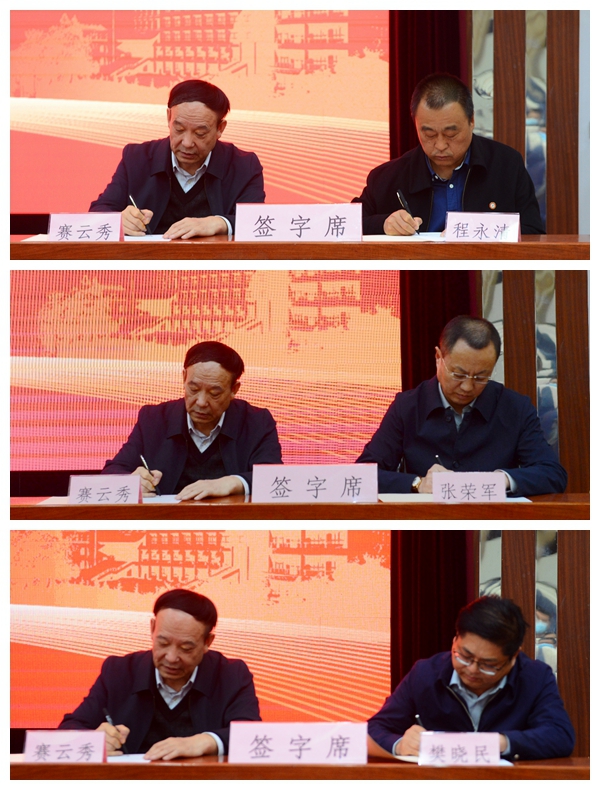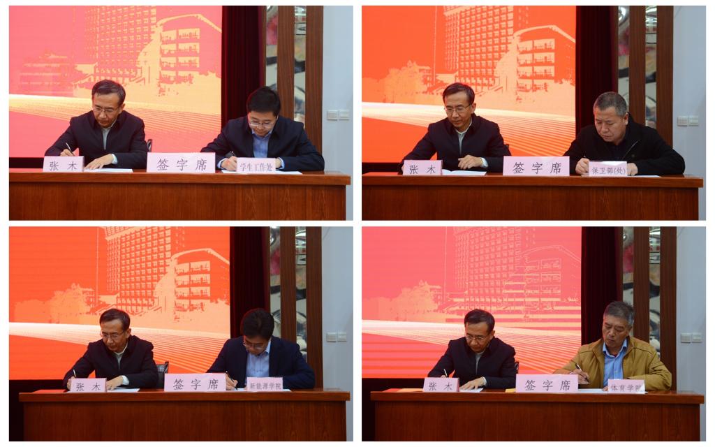 会上,赛云秀、张木、雷西合分别与分管校领导、职能部门和院(系)级单位党组织代表签订了全面从严治党主体责任书、安全稳定工作责任书、意识形态工作责任书。