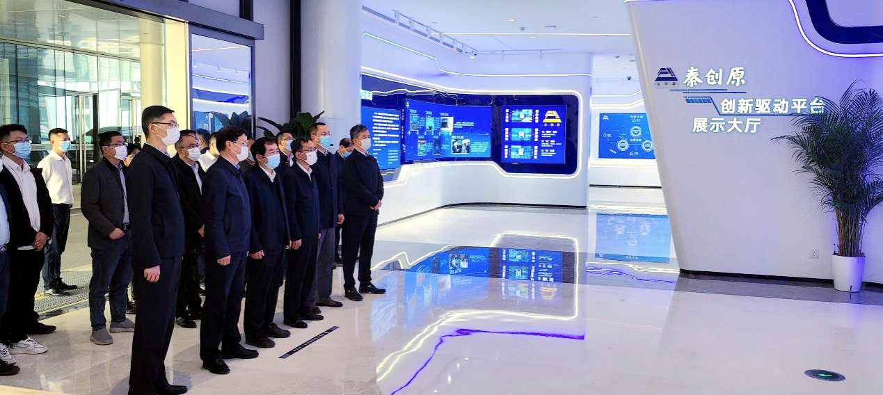 李天太一行首先参观了秦创原平台项目。现场与西咸新区管委会主任姜建春、副主任陈辉就进一步深化产学研合作、人才吸纳等工作进行了深入的探讨与沟通。