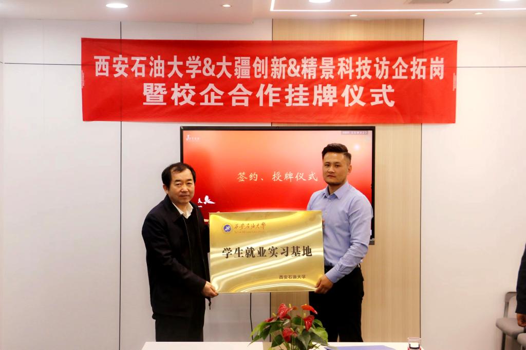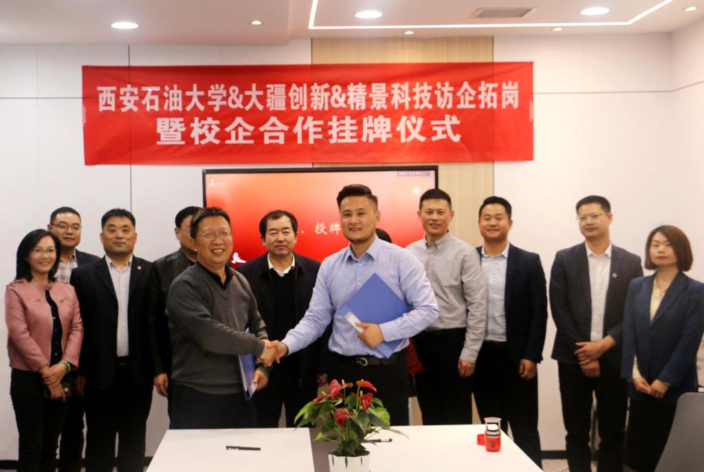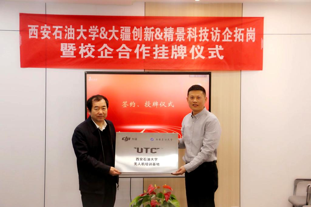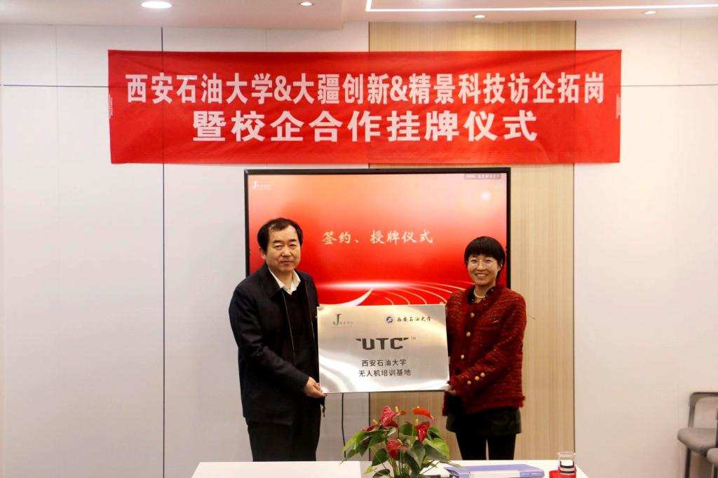相关负责人一行赴精景科技公司开展访企拓岗暨校企合作挂牌仪式。大疆无人机总部张愈经理率精景科技高管团队热情接待了李天太一行。