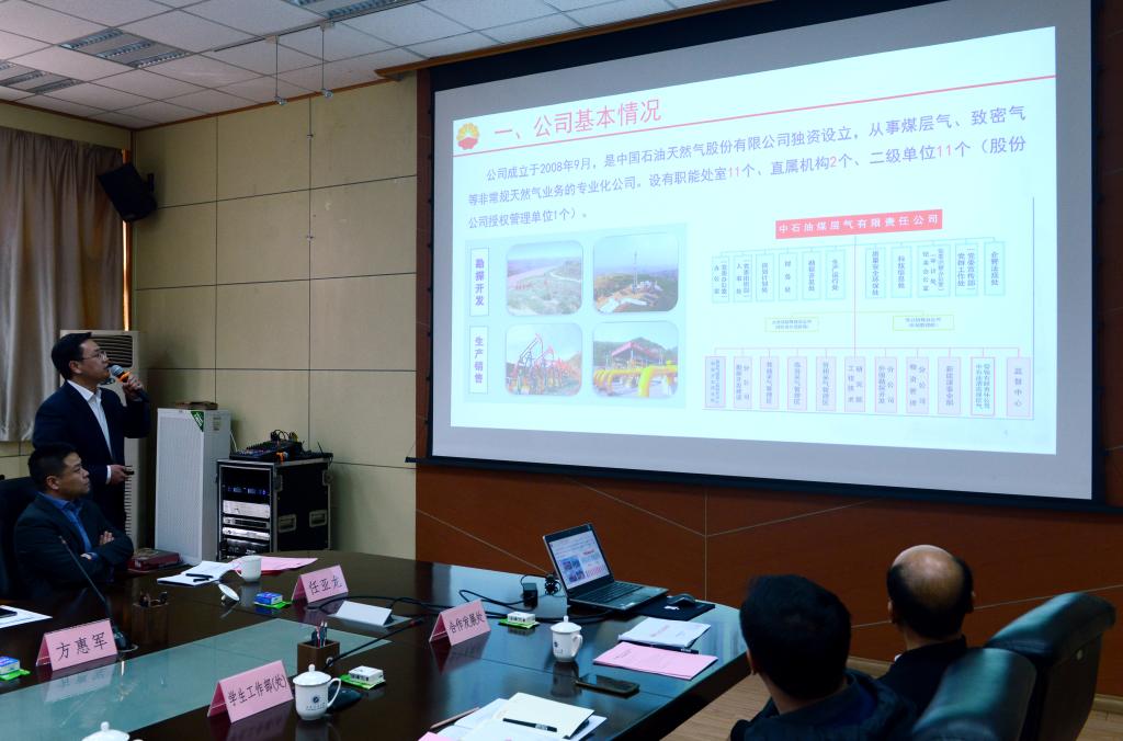 副总经理、总地质师熊先钺从历史沿革、员工状况、开发历程、贡献荣誉以及德州扑克、科技、人才等方面对煤层气公司基本情况进行了介绍,希望通过此次合作交流,双方单位发挥各自优势,做大、做强、做优科研攻关,推动企校共同发展。