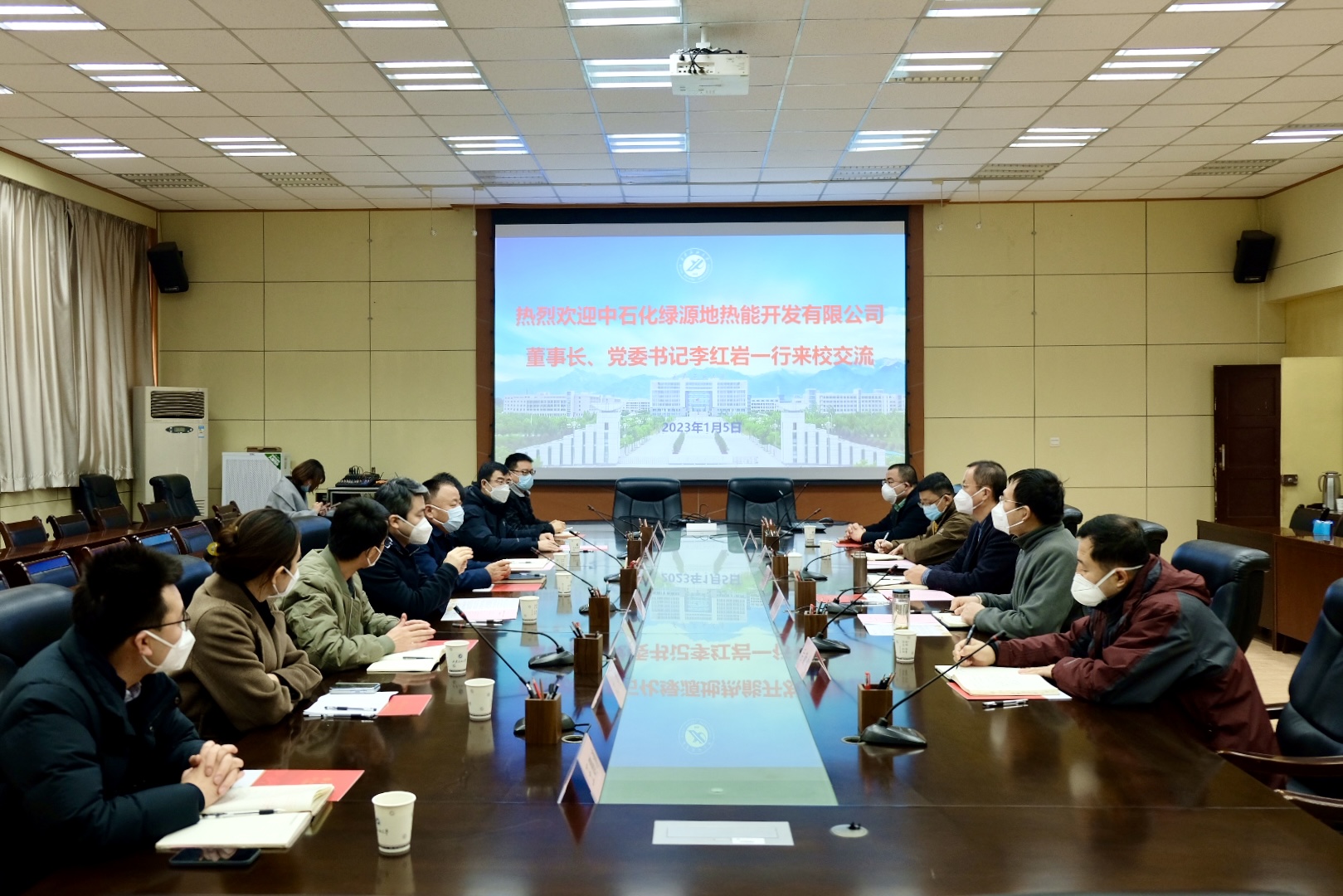 1月5日上午,中石化绿源地热能开发有限公司董事长、党委书记李红岩一行8人来校交流访问,会议在雁塔校区第一会议室召开。德州扑克