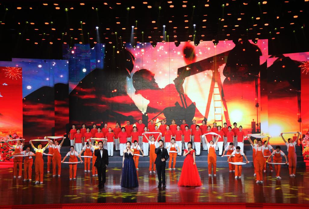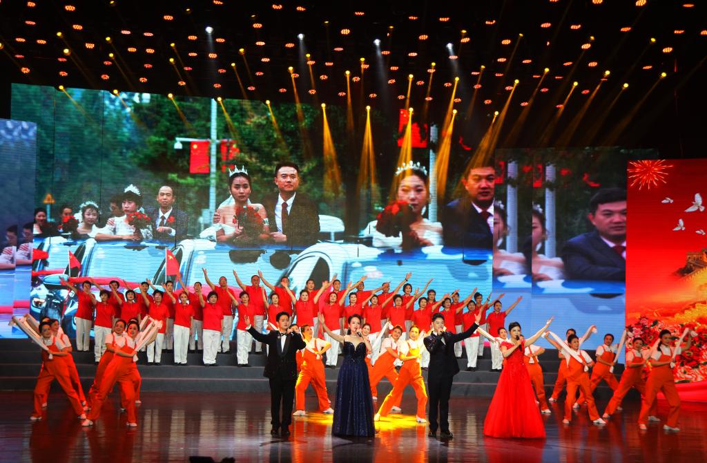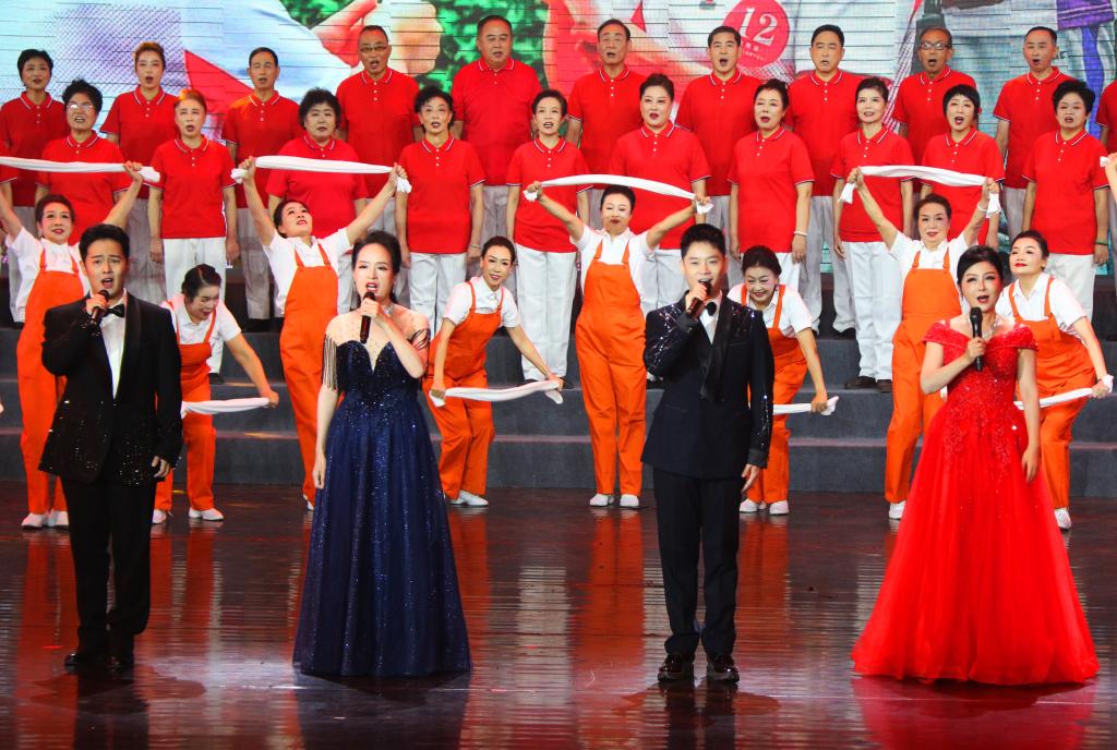 在节目录制现场,伴随着时代号子激扬的旋律,领唱杨彩鸽、黄耀文、郭小荣、张泽宇陆续登场,嗓音华美高亢,唱法惊艳全场。身着鲜艳服装的老年大学舞蹈队员们热情投入,翩翩起舞,时而像彩云在起伏流动,时而又像鲜花绽放盛开。老年大学合唱团员们以嘹亮的歌声唱出了动听的音律之美,唱出了老干部对党的无限忠诚和热爱。优美的舞蹈、豪迈的合唱共同演绎了西石大人建功立业新时代的坚强决心。录制十分顺利,得到了节目组的高度肯定,领唱演员和部分舞蹈队员还被导演安排参加了谢幕演出。