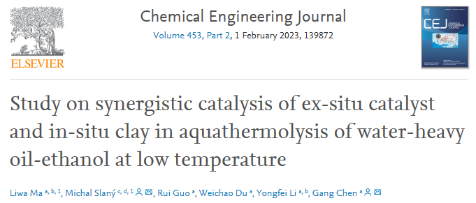 在稠油热采中原位改质技术方面研究取得新进展,探索了外源催化剂和储层原位矿物对稠油水热裂解的协同催化作用,使室内研究更能真实反应稠油原位改质的环境,相关成果以标题为“Study on synergistic catalysis of ex-situ catalyst and in-situ clay in aquathermolysis of water-heavy oil-ethanol at low temperature”发表在《Chemical Engineering Journal》(IF=16.744)。该论文第一作者为化学化工德州扑克