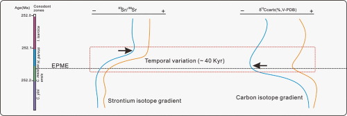 在二叠系/三叠系之交,发生了地质历史时期最大规模的生物大灭绝事件,该事件导致90%的海洋生物和75%的陆地生物灭绝,并留下了众多关键的生物地层学与化学地层学证据。此前研究证实了全球火山活动为主导因素的环境恶劣化导致海洋缺氧、温度升高、森林大火、陆地风化、酸雨等不利条件是导致生物大灭绝的重要原因,但不同研究剖面所得结论仍存在广泛争议,如碳同位素显著负漂移的控制因素、生态短暂恢复是否具有全球一致性、早三叠世生态辐射的阶段性等等。该文以中国华南剖面为研究对象,利用锶、碳、氧同位素为研究手段,并与世界范围内其它研究剖面进行了对比探讨,在如下几方面做出了标志性成果:(1)首次尝试提出了高分辨率(<0.5百万年)锶同位素化学地层学。以前普遍认为,锶元素在海水中滞留时间为1~2百万年,而海水混合均一时间仅数千年,因此海水中锶同位素是均一的,且其同位素地层对比的精度在1~2百万年。但该文通过连续密集取样分析,以及对比前人百万年尺度内的研究对比,发现锶同位素在不同剖面百万年尺度内(<0.5百万年)存在时空差异,并非如前人所描述的全球一致。论文进一步提出了陆源物质快速输入和海洋停滞是导致锶同位素在不同剖面的时空差异的原因。这为以后利用锶同位素开展二/三叠之交古海洋环境演化的高分率尺度研究提供有益探索。(2)为短暂生态恢复期“冷却事件”提供新的证据。该文通过高分率化学地层分析,表明短暂生态恢复期的“冷却事件”(Wuchiapingian/Changhsingian Boundary Cooling Event并非全球同步出现,而表现出地区差异性,并且主要受控于海水深度和距离岩浆活动距离。这为生物大灭绝发生的时空不均衡性提供了有力证据。(3)为二叠系/三叠系之交海洋分层缺氧提供了新的证据。论文深入探讨了不同水深环境剖面主灭绝线(Permian/Triassic Boundary)处锶、碳同位素梯度的特征,论证了该梯度由海洋分层和洋流循环停滞所造成,远洋和近陆分别受控于海底火山和陆源物质输入的控制,而与海洋初级生产力变化无关。