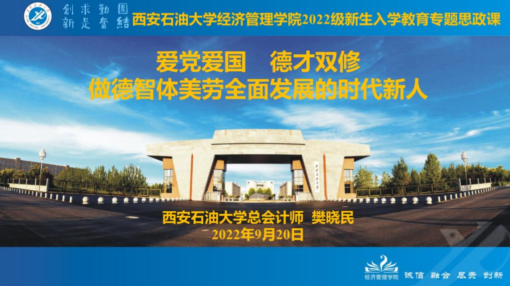 为帮助新生入学后尽快融入校园环境、积极面对大学生活、全身心投入专业学习,顺利实现角色转变,引导学生努力成长为社会主义合格建设者和可靠接班人而奋斗,9月20日,总会计师樊晓民以《爱党爱国,德才双修,做德智体美劳全面发展的时代新人》为题,围绕文化知识教育、爱国主义教育、思想品德教育和理想信念教育等方面内容,用深入浅出的理论讲解、图文并茂的案例分析和生动形象的个人经历为经济管理德州扑克