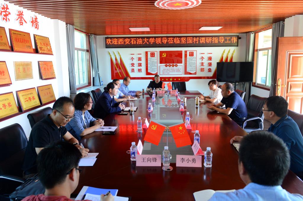 调研期间,李天太一行来到坚固村的面粉加工厂、养牛场,调研村级产业发展,考察乡村振兴进展情况,并就乡村振兴、校地融合发展等方面与永寿县委书记王飞、县委组织部部长魏国鹏、副县长范启新、永平镇和坚固村的负责人进行了座谈。