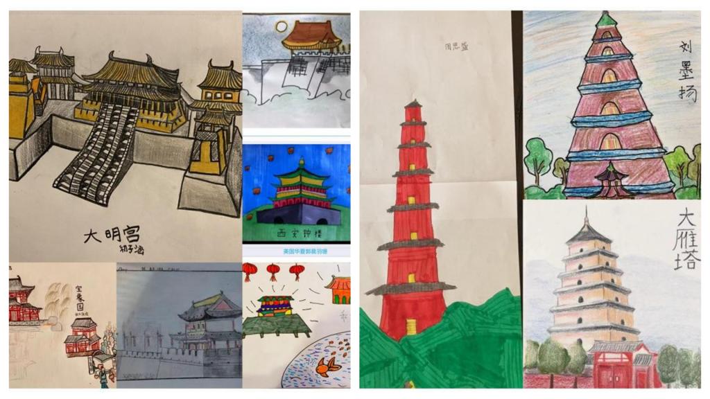 这10天的云端学习,小营员们在老师的带领下,云游在中华五千年悠久历史文明的长河中,学习以长安为都城的汉、唐两朝有趣的历史故事,了解历史典故;学习书法、剪纸、太极拳和古筝,感受妙趣横生的中华传统文化;云游长安城,打卡西安城墙、书院门、钟楼等,聆听西安的人文故事,探寻长安城的变迁;云端探寻回民街、品味一碗羊肉泡馍里的市井烟火;走进王进喜铁人纪念馆,聆听石油背后的故事,感知永不言弃的铁人精神。小营员们在认真学习的基础上,做到学有所思,学有所获,学有所悟,通过录制音频、视频、绘画图文等方式制作完成各种打卡作品,增加了小营员们的参与感和对中华传统艺术的兴趣,更加深刻地感受中华传统文化的魅力,每个人都力争成为中华优秀传统文化的小小传播者。