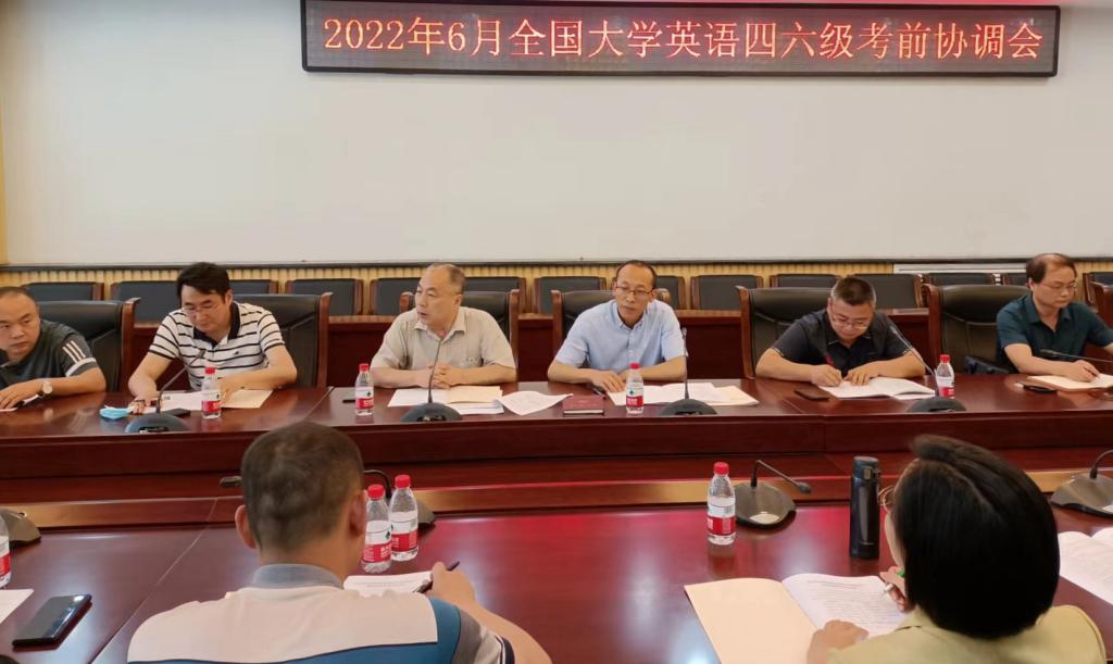 专门召开了2022年上半年全国大学英语四六级考试工作协调会。陈军斌在会上强调,四六级考试是国家级考试,各部门要高度重视,认真履行工作职责,强化责任意识,保证考试顺利进行。他对本次四六级组考工作提出具体要求,一是要认真做好考前准备工作,严格监考教师资格审查及请假制度,杜绝临时代监考行为,做好监考教师的培训和考务工作安排,确保工作人员熟悉规则;二是采取有效措施,确保安全保密工作万无一失,做好试卷保密和交接工作,加强监督;三是惩防并重,严肃考风考纪,杜绝舞弊事件的发生;四是加强考试环境综合治理,检查语音设备并排查信号盲区,确保听力考试顺利进行;五是要扎实落实疫情防控要求,做好应急预案,严格落实防疫工作职责。