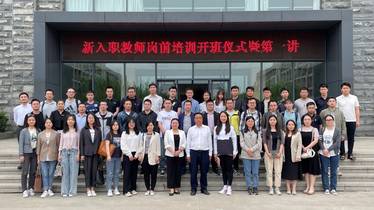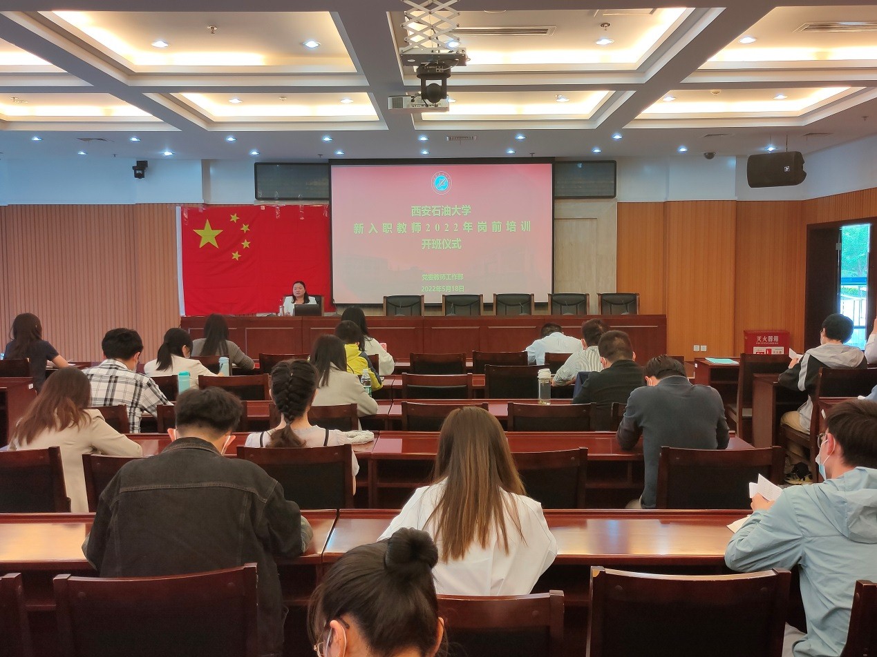 在鄠邑校区图书馆第一会议室举行2022年新入职教师岗前培训开班仪式暨第一讲。副校长程永清以《学习校史探初心,增信立志谱新篇》为题做新入职教师岗前培训第一讲。教师工作部部长武晓朦主持开班仪式,54名新入职教师及教师工作部工作人员参加了开班仪式。