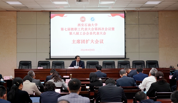 4月8日下午,校长李天太在雁塔校区会议中心第三会议室主持召开了第七届教职工代表大会第四次会议暨第八届工会会员代表大会主席团扩大会议。全体主席团成员及机关处室主要负责人参加了会议。