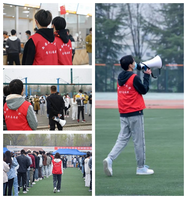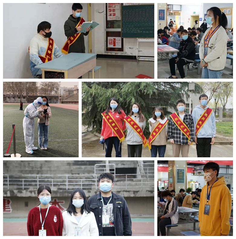 师生志愿者积极投身于校园疫情防控工作,参与到核酸检测登记、身份核验、食堂秩序维护、校园防疫纠察等工作中来,他们严阵以待,在平凡中坚守自己的热爱。