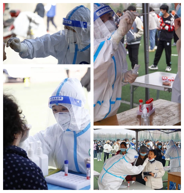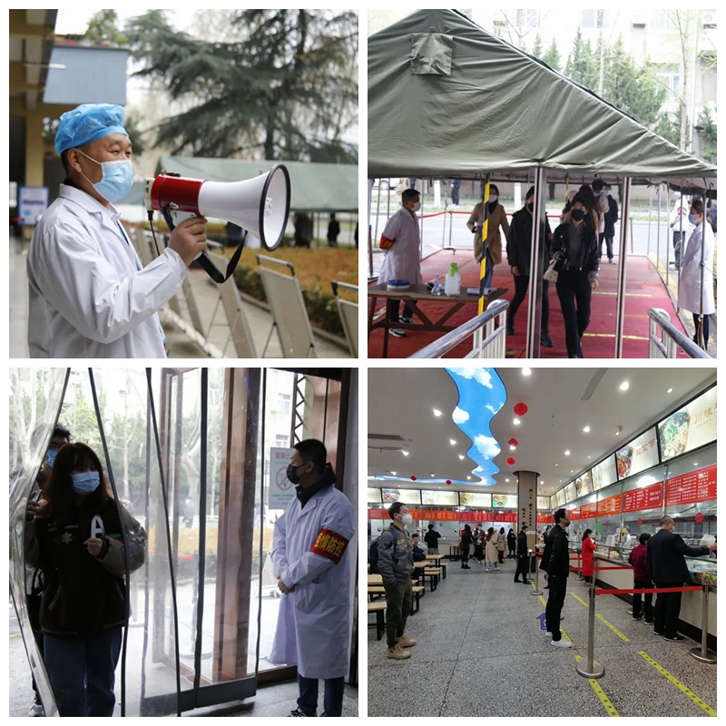 校医院全体工作人员放弃休息,随时待命,26名医护人员全部入驻鄠邑校区,确保每日核酸检测工作准时开始,按时完成。