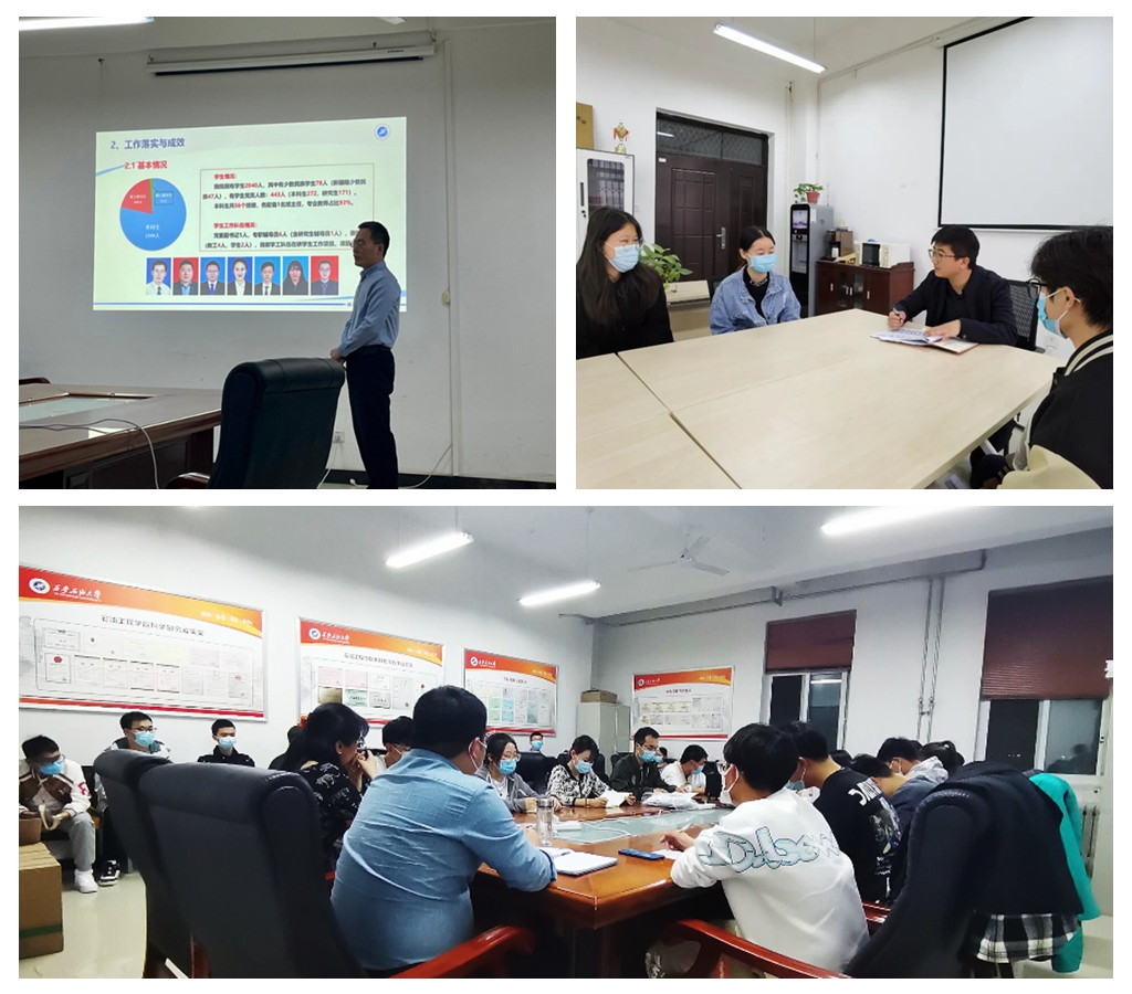 辅导员以学生工作例会、党建办公室例会、年级班干部会议、班会等多种形式,及时全面掌握学生情况,做到管理松弛得当,有则有律。
