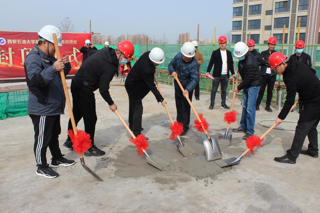 副校长杨战社、基建处处长张凌寒和施工单位、监理单位负责人及基建处全体人员共同参加了仪式。封顶仪式由基建处副处长秦光义主持。