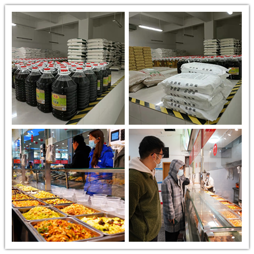 “手中有粮,防疫不慌”。后勤保障组及时采购大米1800袋、面份2000袋、食用油1600桶等,做好粮油肉蛋菜等重点生活必需品的货源调度和动态补充,雁塔、鄠邑校区后勤库房各种基础食材物资储备充足。“有的吃”后,还要尽可能考虑“吃得好”,后勤保障组制作发布涵盖5个校园餐厅、100余个供餐档口组别的鄠邑校区选餐指南,近千种菜品清单及单价信息一目了然。在雁塔校区则开展了无接触送餐服务,惠及不少师生。