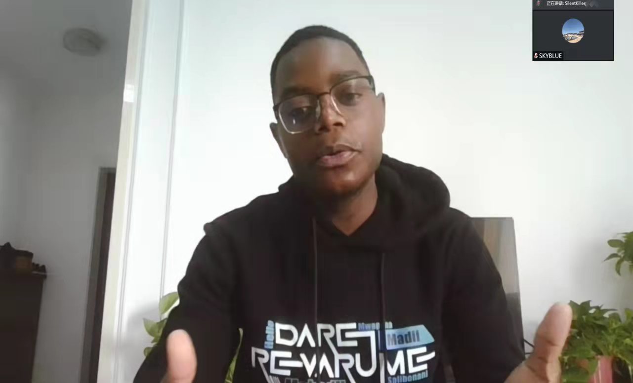 津巴布韦籍留学生杜康同学在诵读会上讲述他的十年来华留学之路