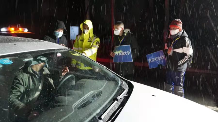 教职工纷纷自发组成私家车队,护送学生顺利离校返家。