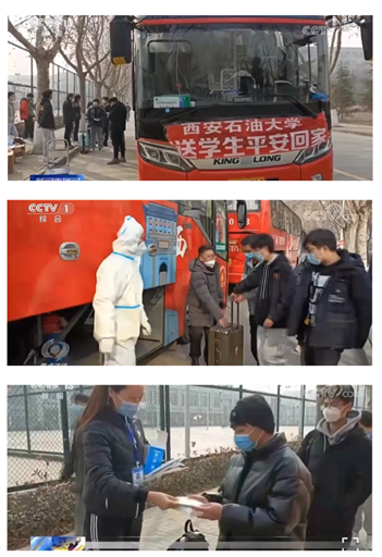 第一时间成立由党委书记、校长任组长的寒假学生返乡工作专班,按照疫情防控政策规定和“科学评估、学生自愿、一人一策、全程追踪”的原则,统筹推进学生离校返乡工作。全面摸排、精准掌握所有学生离校信息统计,逐一同全省各县市教育局联系对接学生返乡,对接转送车辆、联系包机等,这就是党委学生工作部、研究生工作部、团委及各院系学工干部们的主要工作,其中工作量可想而知,他们每天睡上三个小时成为一种奢侈。交通转运工作人员合理安排交通工具,协调处理学生返乡过程中涉及交通转运事宜,采取“点对点”闭环转运模式送达一场两站,为返乡学生保驾护航。