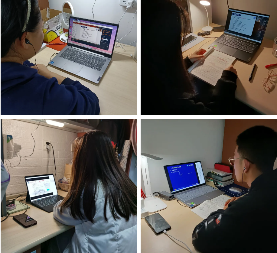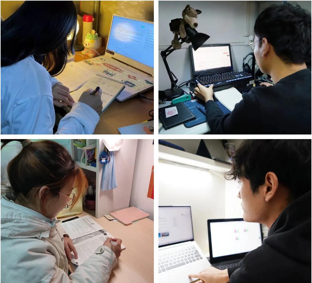 学子通过电脑、平板、手机等设备进入直播课堂,在宿舍认真地上网课。 戴上耳机,聚精会神,思路紧跟老师的节奏。没有课程的时间也要自主学习,写作业、查论文、浏览信息。自我的时间,更要好好管理,用笔记录课堂知识要点。