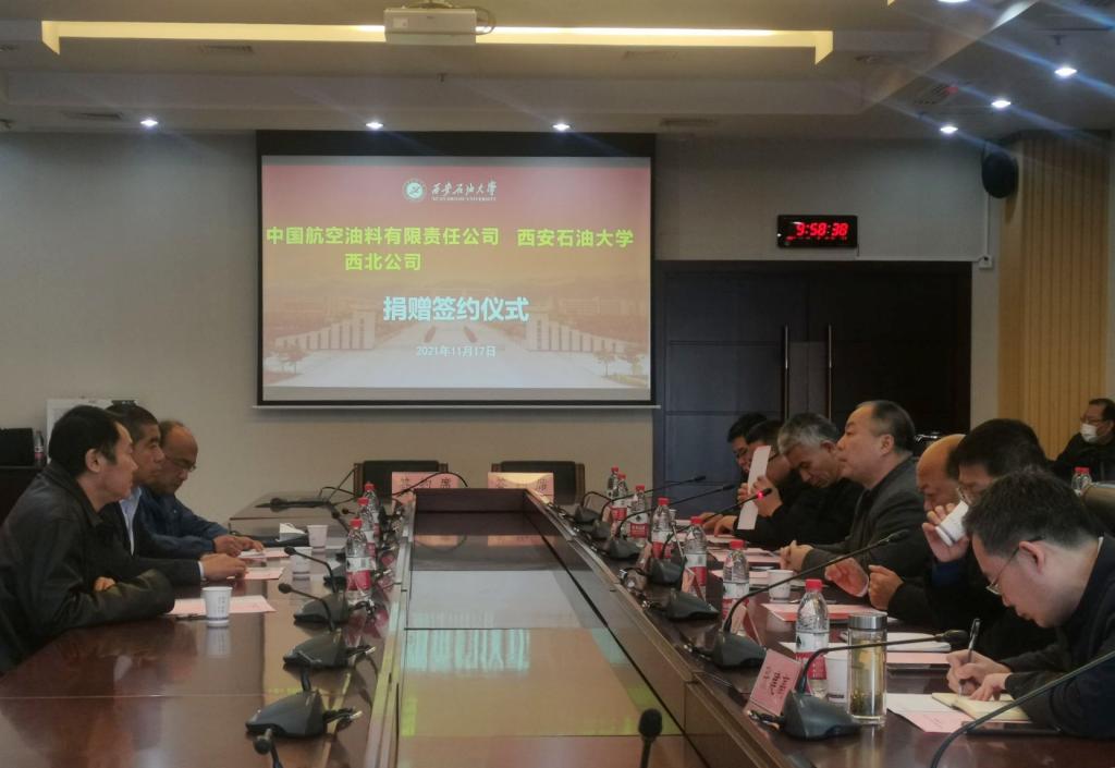 与中国航空油料有限责任公司西北公司捐赠签约仪式在鄠邑校区图书馆第二会议室举行,中国航空油料有限责任公司西北公司副总经理陈少华,德州扑克
