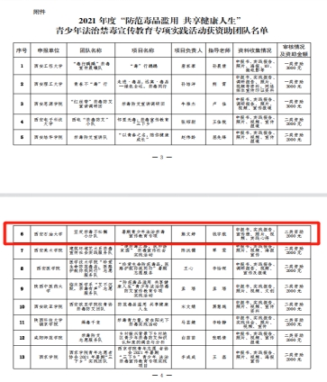 近日,根据共青团陕西省委员会下发文件《关于确定2021年度“防范毒品滥用 共享健康人生”青少年法治禁毒宣传教育专项实践活动获资助团队的通知》,德州扑克