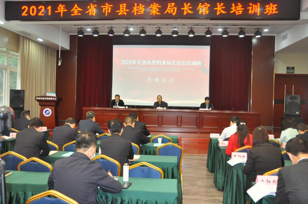 培训中心顺利开班。省委副秘书长、省档案局馆长高新民,副校长杨战社出席开班仪式。仪式由陕西省档案局二级巡视员、人事处处长王展志主持。来自全省各市、县档案局馆长及省档案馆干部80余人将参加本次培训。
